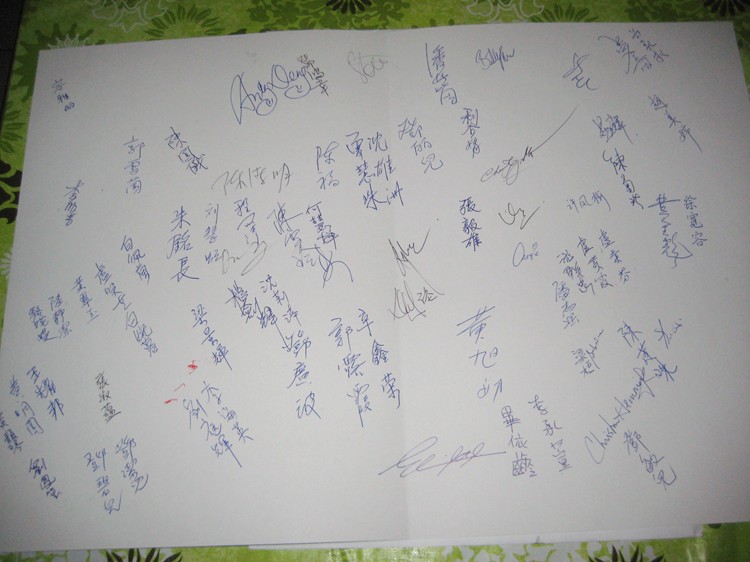 當晚八十位師生在背後簽名的咭片