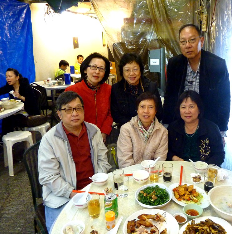 3月3日晚上,陳淑萍與住在香港的高中同學曾慧珍(站),黃克雄(站者),洪佳,劉桂寧及韓連美,在大排檔品嚐了清蒸鮮斑的可口晚餐。可惜拍照時,兩斤重的石斑還沒有蒸熟上桌亮相。多謝香港同學招待來自國外的同窗吃到了一頓道地的粵菜。