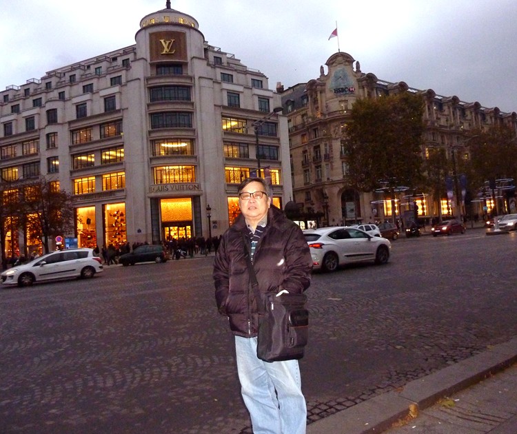 對面街是鼎鼎大名的路易威登LV旗艦店,許多中國與香港婦女千里迢迢來巴黎,就是為了光顧這家名店,一擲千金乃至萬金,採購LV皮包和手袋。洪佳在兩位女同學大力推薦下,找到最好的位置,沾了一點LV的光環。