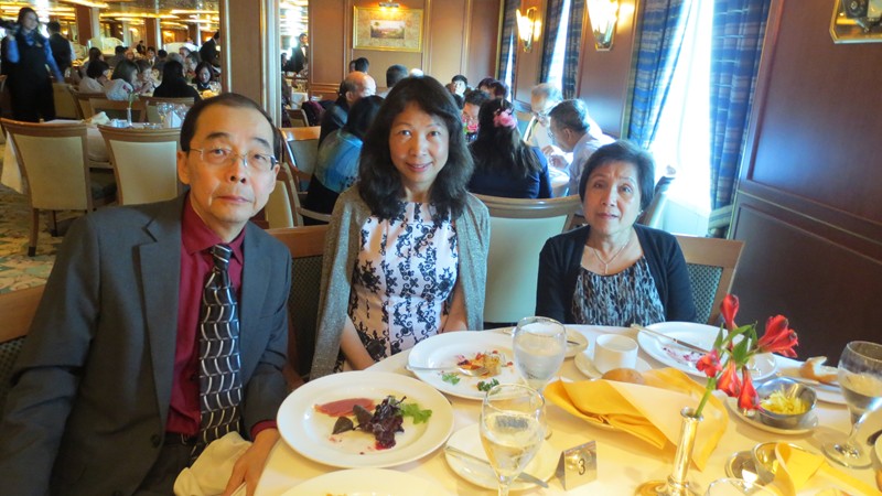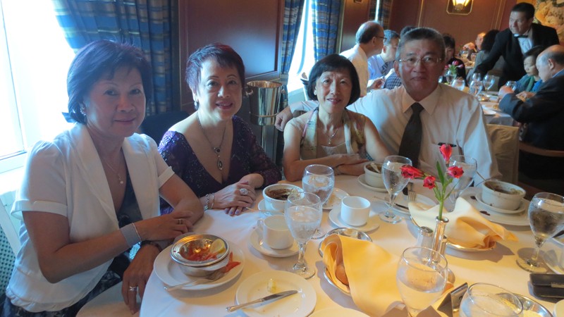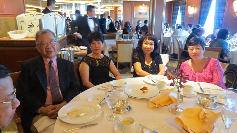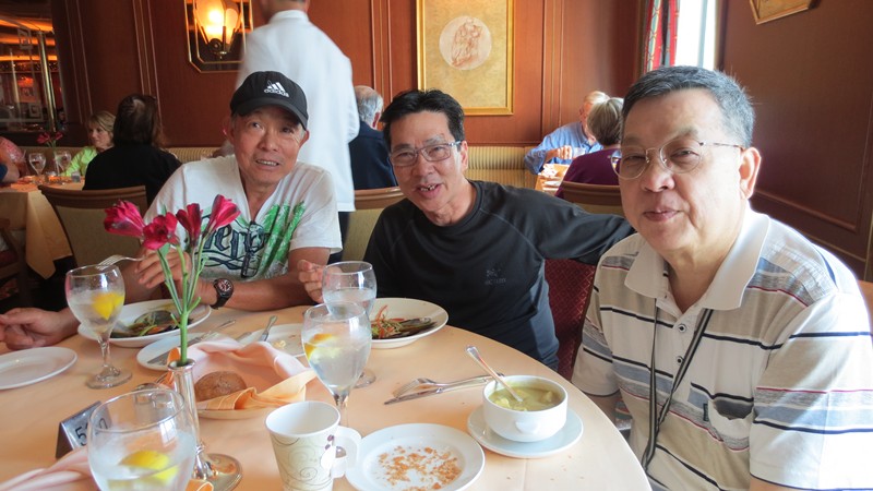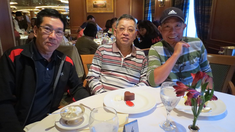 1 二零一五年四月七日,首天聚會於越南飧厅,曾瑞瓊当晚另有约會,怱怱進來打个招呼,和朱景光,張麗桃耒張合照。