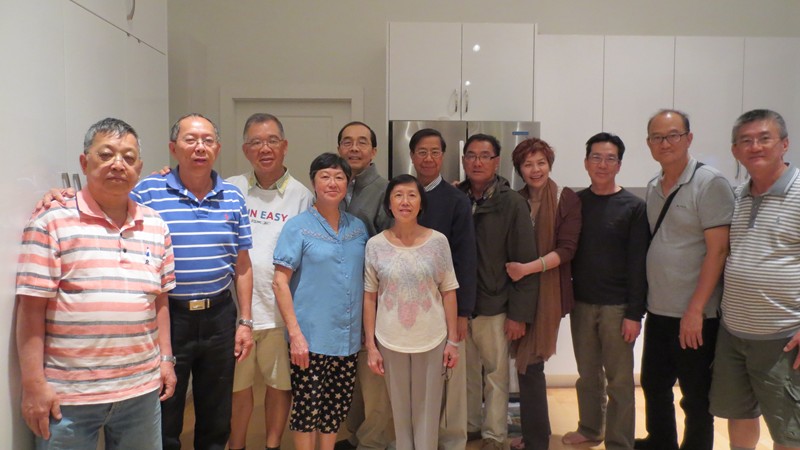196 曾锦賢和張麗桃,潘藍茵這兩位老友記來張合照,機會難逢。後面穿黃色花的美女是 Pauline ,坐着的秀華姐正在考虑何去何從?