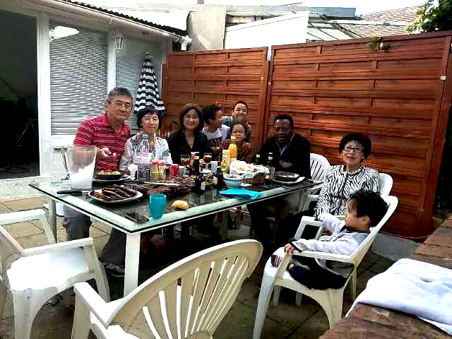 惠馨與夫君Gilbert(左二, 三)雖然姍姍遲來,卻沒有錯過在院子飽嚐燒烤餐的時機。