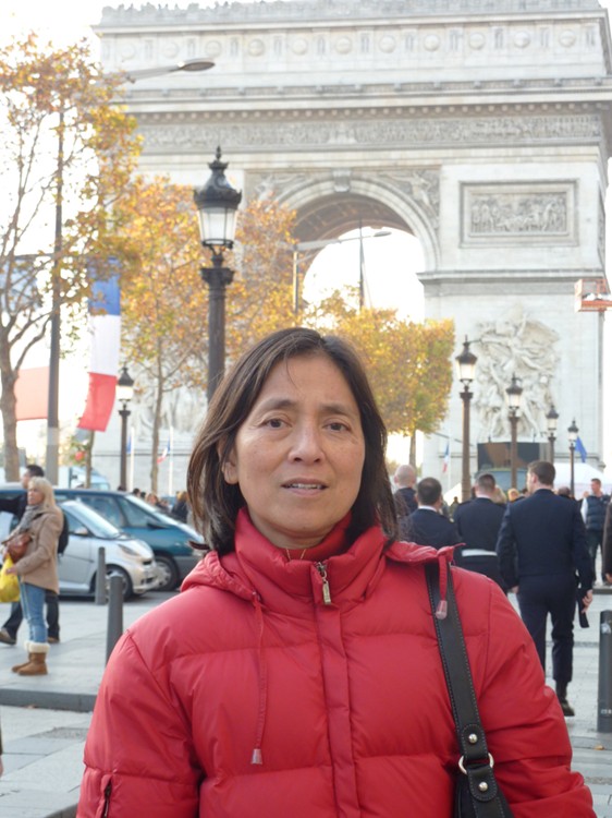 莫秀蘭在巴黎香榭麗舍大道留下倩影,背後是凱旋門。