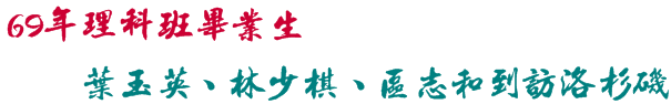 今年的八月廿一日遠從馬里蘭州的葉玉英、新澤西州的林少棋、和猶他州的区志和到訪洛杉磯,住在南加州地區的69年理科班同窗盡地主之誼,在洛杉磯地區的阿凱迪亞市一品齋餐館宴請來訪同窗,重溫舊夢、敘舊、、、、、自然不在話下、、、、、