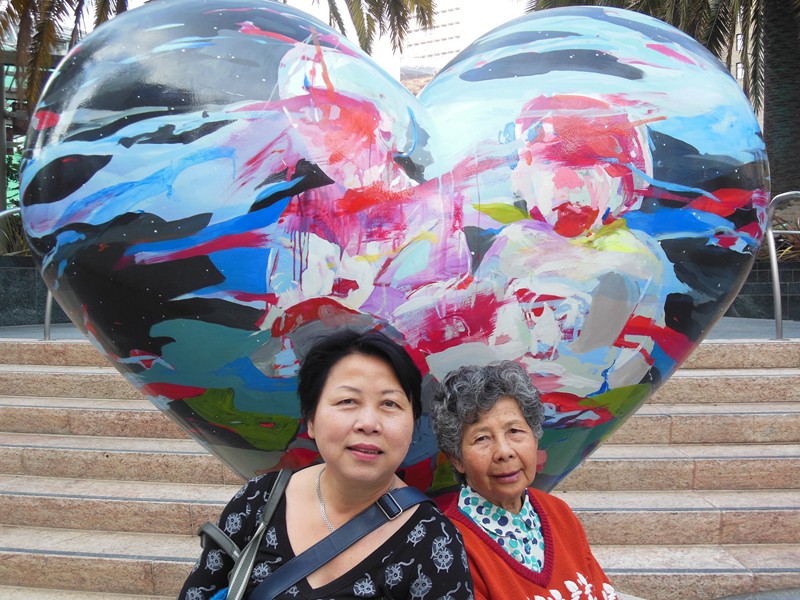 柯錦珍與友人在市區街頭合影