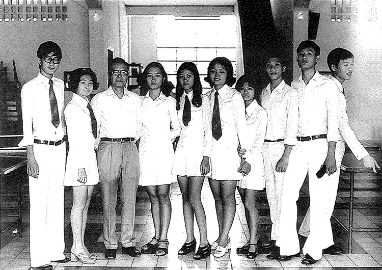 #7 1972年畢業校友 坐者左起:曾谷鶯 沈瑞安 馮玲 陳嘉齢 立者左起:韓麗英 何艷珍 姚福照 賴學慰 沈日恆 陳年年 梅家駒 云昌榕 朱俊美