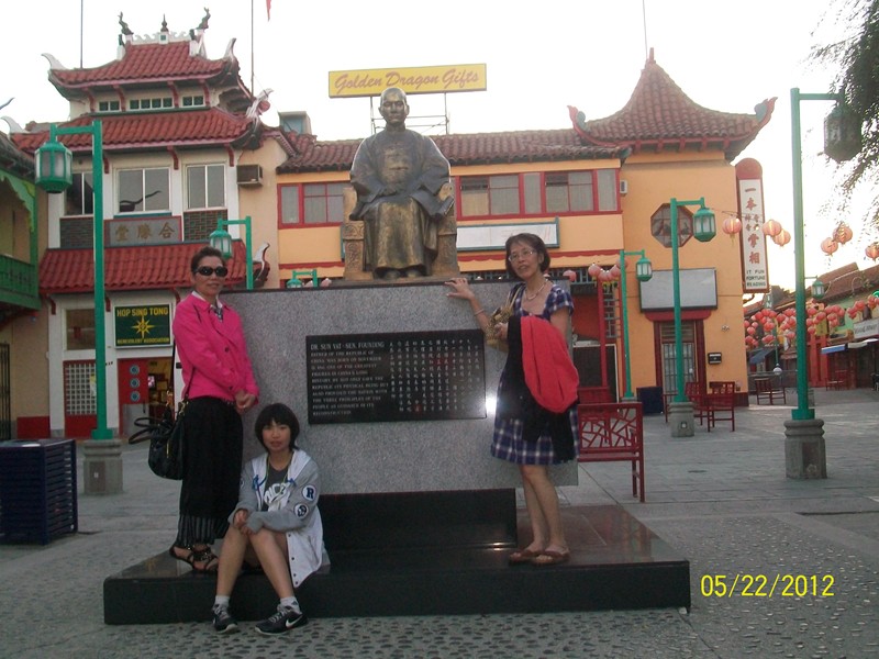 Allison & daughter and Lien Chau Truong in front of Dr Sun Yat Sen statue in China Town LA.