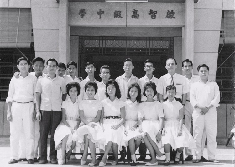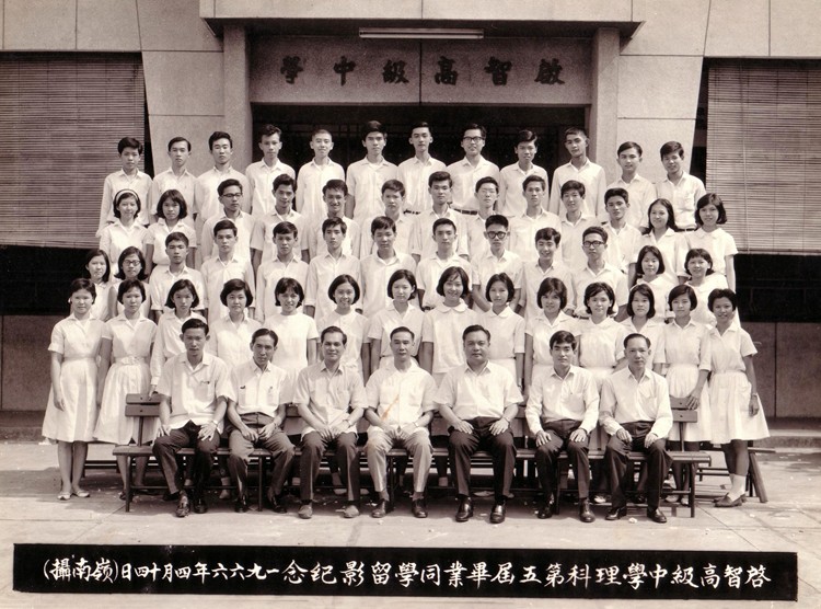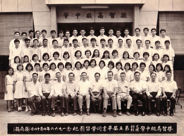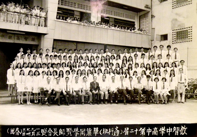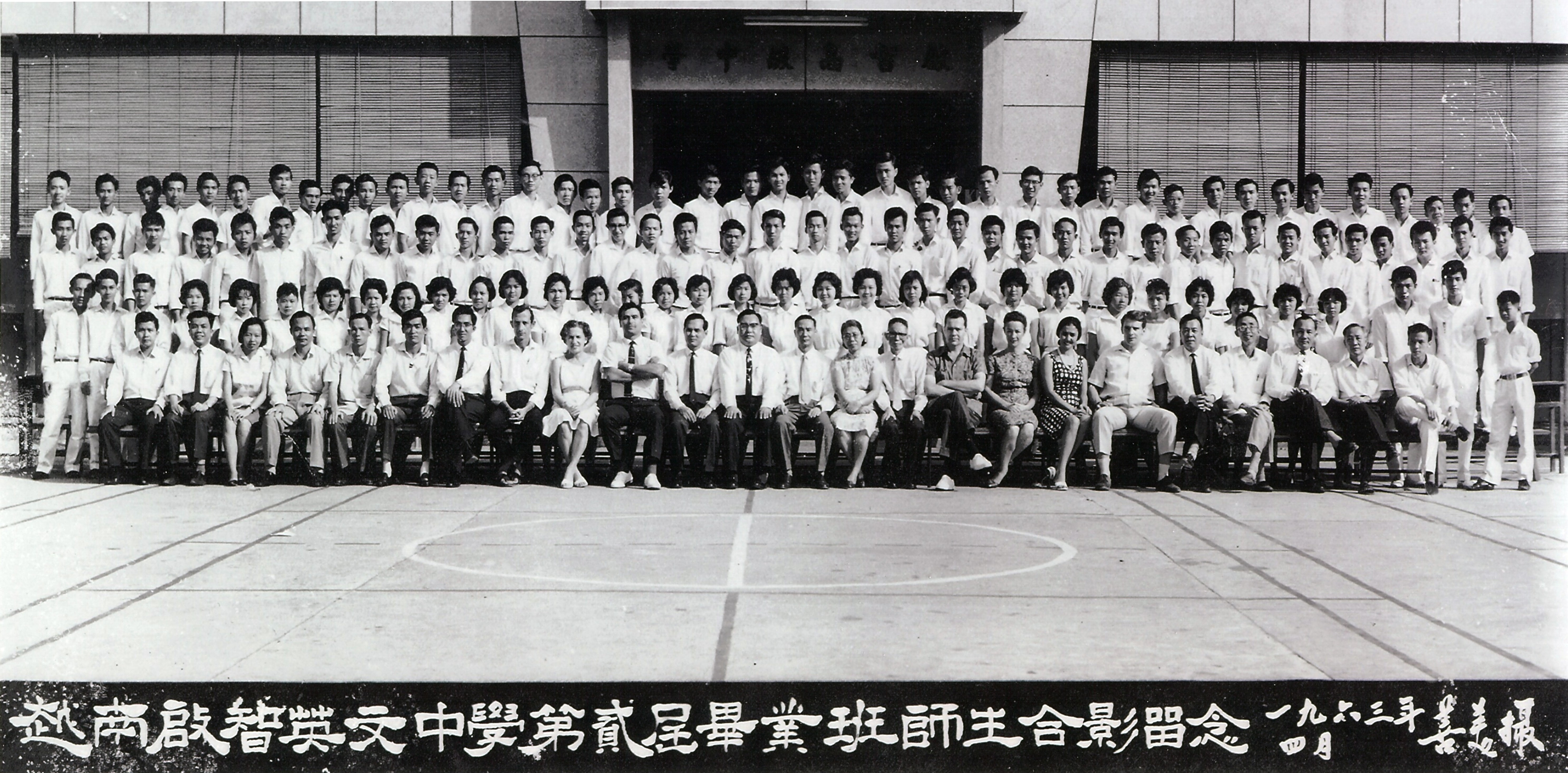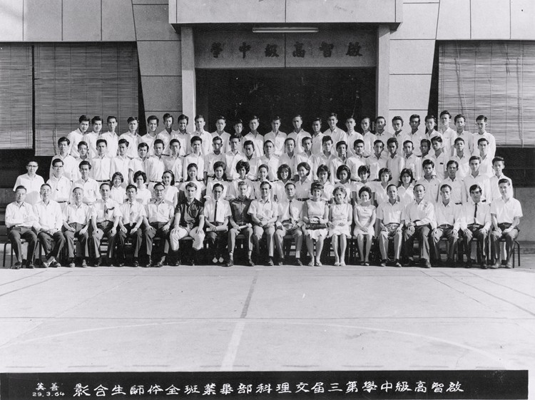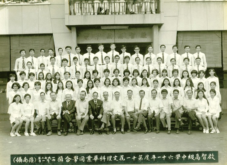 後排:黃冠群 李克元 林東光 林少祺 鄧細祥 何偉國 曾廣植 老來健 陳楊章 陳楊彬 三排:林承康 李啟仁 劉克孝 陳庭琥 方永祥 陳家勉 陳家勵 王永健 黃偉忠 陳年好 二排:王潤蘭 余秋雲 林愛珍 王白珠 葉麗卿 王秀芬 蔡美珍 鄧裕翎 葉玉英 刑麗華 彭麗真 王錦蘭 吳金科 前排:張弘光老師(物理) 梁景輝老師(文法) 曾老師(讀本) 馬老師(代數, 解析幾何) 馬太太 陳敬騰老師(三角) 葉老師(事務主任) Mr Cerceul(英文老師) 莫成銳老師(英文) 事務處職員阮先生 朱榮長老師(投影幾何, 微積分)