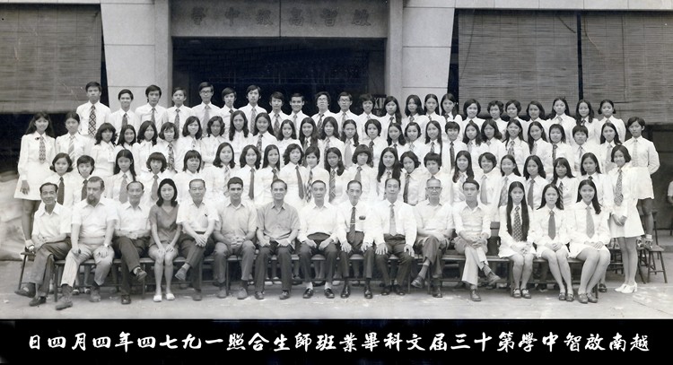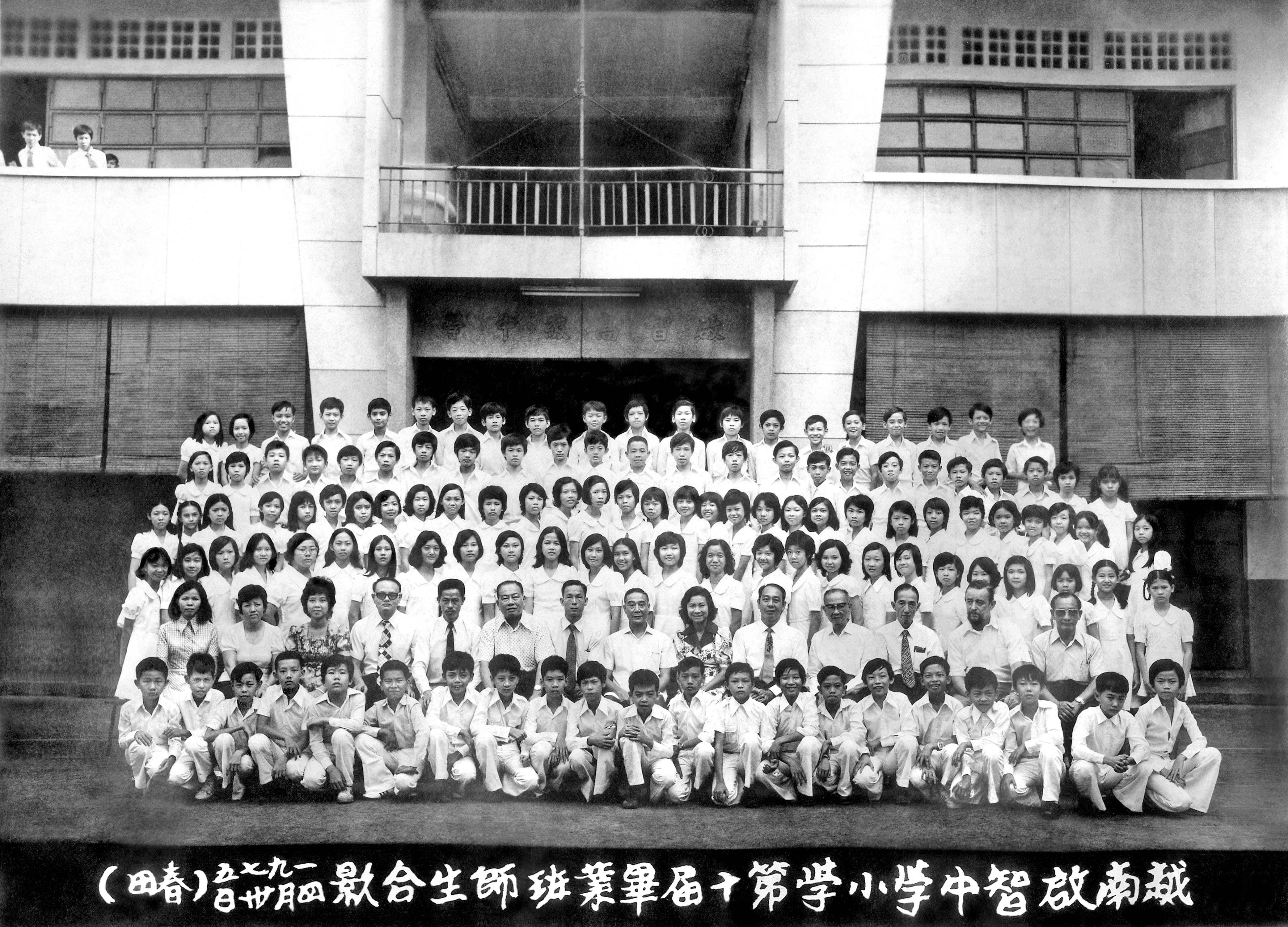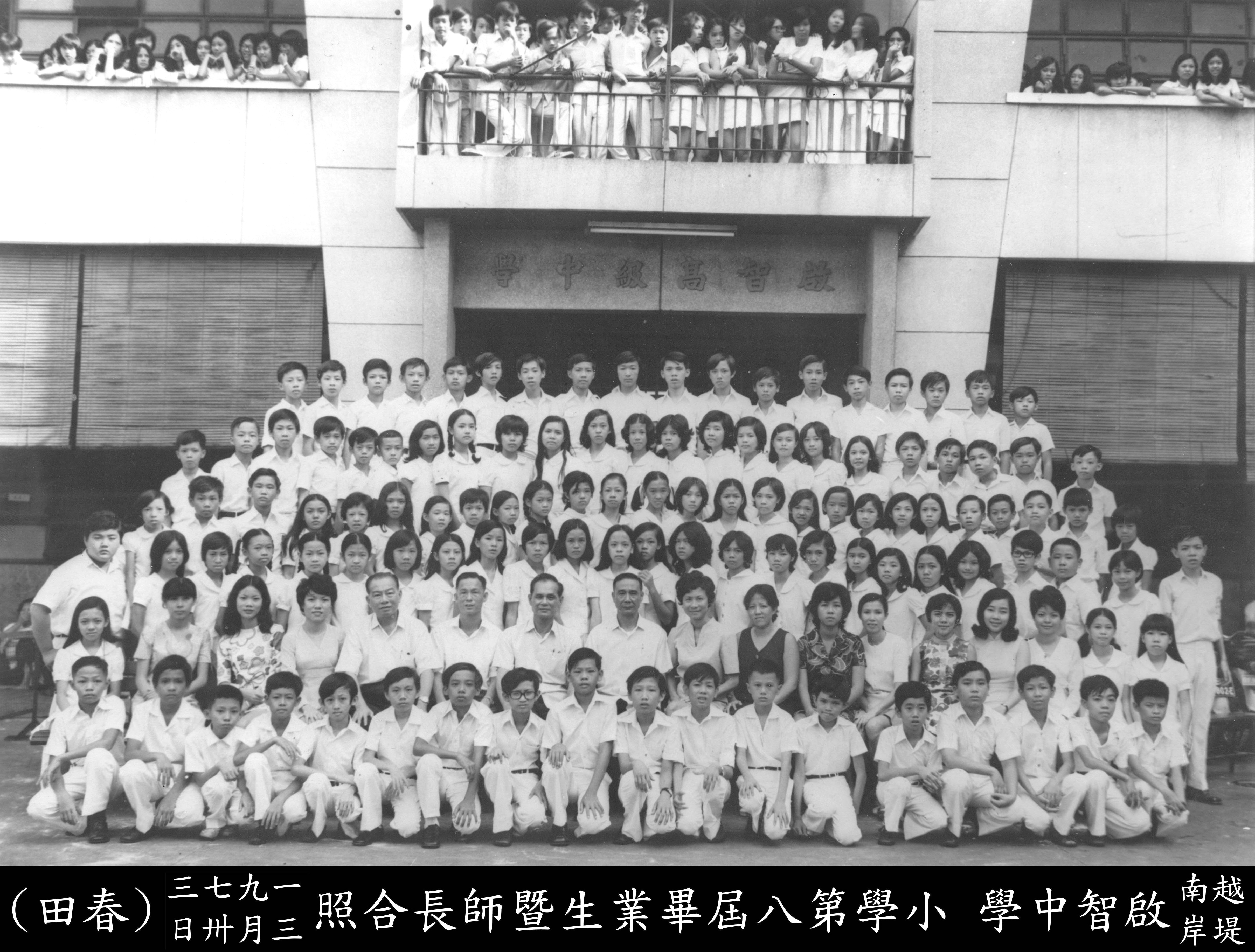 1979年畢業生與教職員合影。此小學畢業照是這一屆的校友在1974年小學畢業時與教職員合影,由於1975年國土變色,將在1979年畢業的校友,都歸屬1979年畢業生。