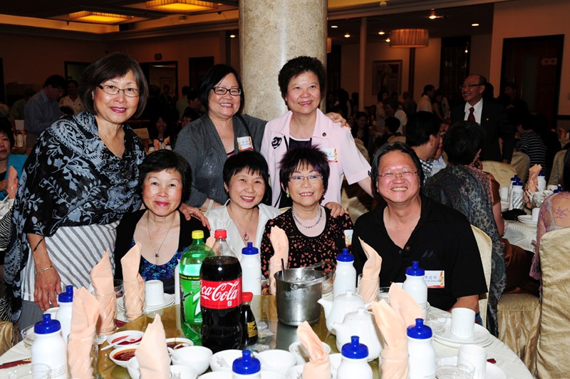 立者:廖家平、陳治國、張婉秀(66年文科)、張婉玲 坐者:李錦霞、徐秀英(黃學興太太)、徐寬容、Kim Huynh(徐寬容先生)、黄建明、葉偉、張惠芳