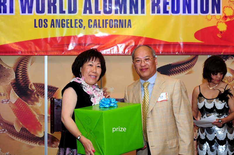 劉慧虹老師(67年文科校友)中兩張迪斯尼樂園入門票,由73文科梁達邦捐贈、68年文科陳治國頒獎。