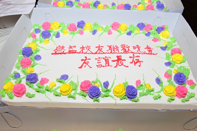#74 聯歡晚會的蛋糕之一:友誼長存。蛋糕上的『長』字還有一條尾巴,拖得長長的,想來是『長長久久』的 意思。