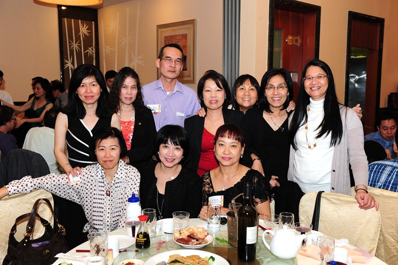 #21 79年校友,立:馮耀雄、徐永明、葉聰。坐:葉慧、XXX、蘇艷樺、柯淑芬、潘麗萍、XXX